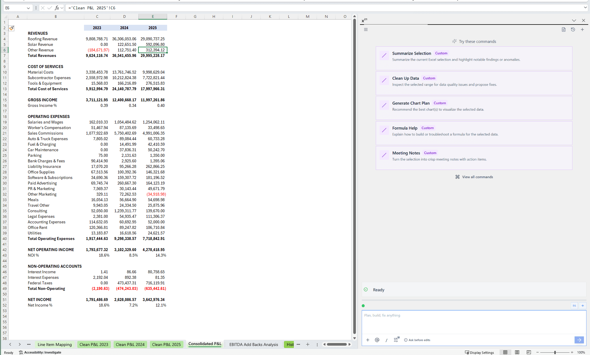 Problem: Once data is classified, you need to populate your QoE workpapers—historicals mapped to your standard structure. This is where your templates meet their specific data.