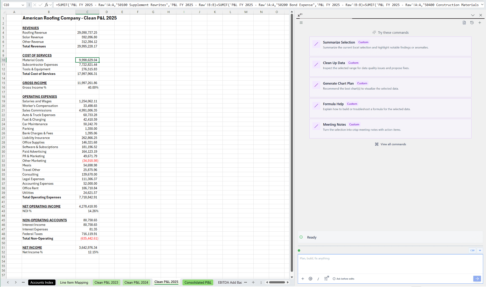 Problem: 150 accounts need to be mapped into standard FDD categories—Revenue, COGS, OpEx, D&A, Other. Doing this manually is tedious, and consistency matters for the final schedules.